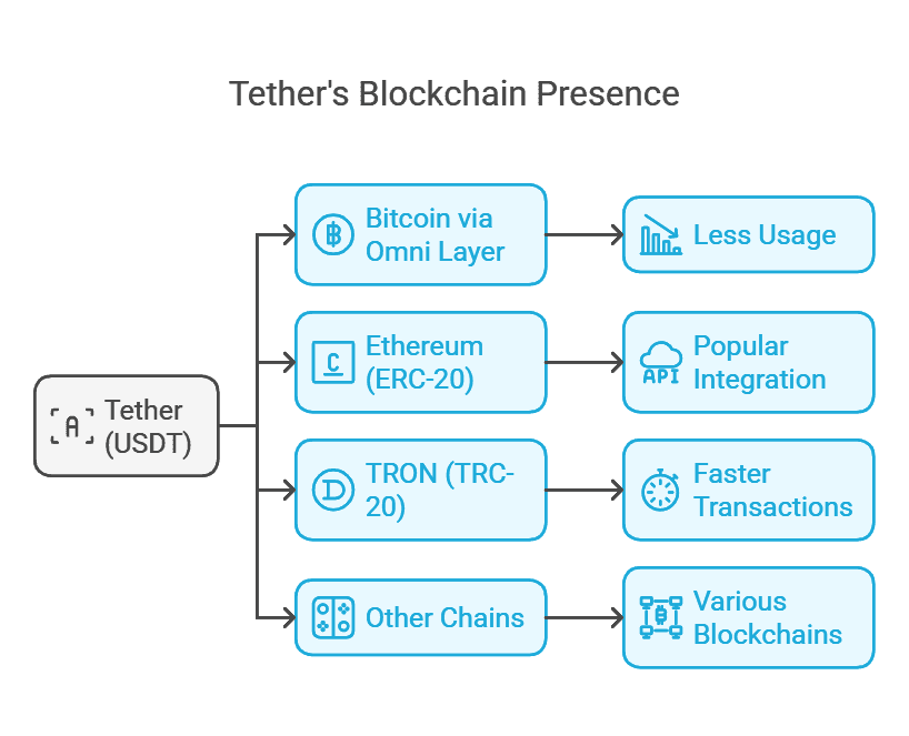 - Other Chains: Tether also exists on EOS, Liquid Network, Solana, Algorand, and more.