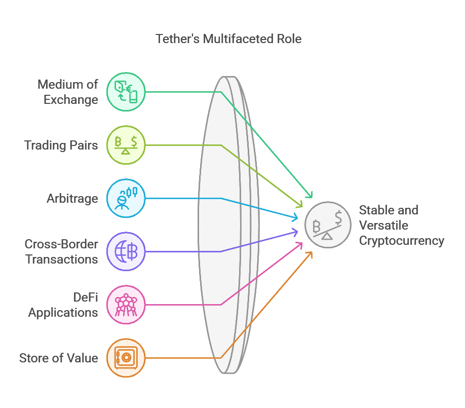 - Stable Medium of Exchange: USDT offers a way to transact in a crypto-like environment without exposing oneself to the wild price swings of something like Bitcoin or Ethereum.