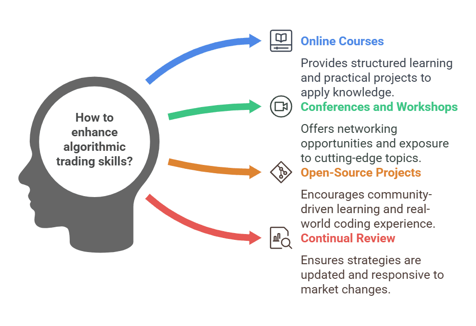 Broadening your knowledge base through structured courses, industry events, open-source collaborations, and periodic strategy updates ensures you don’t rely solely on the best books about algo trading. This layered method can turn your ambitions into a sustainable algorithmic trading business or even pave the way for you to become an algorithmic trader at leading firms.