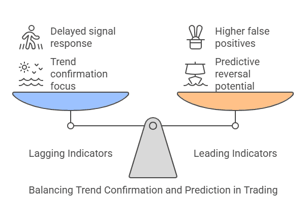 - Avoid relying on a single indicator: Each indicator tells a slightly different story. Combining multiple signals can provide a clearer picture. For instance, if a leading indicator like RSI shows overbought conditions but a lagging indicator like a Moving Average confirms a strong uptrend, you might wait for further confirmation before entering or exiting a trade.
