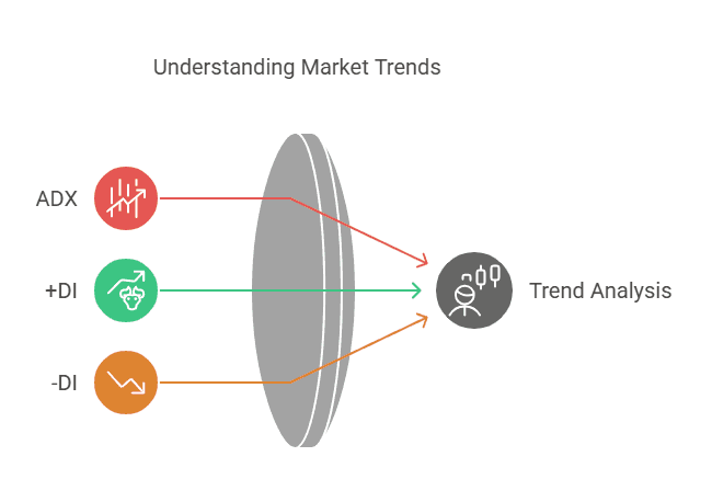 Around the same time, +DI moves above -DI. This bullish crossover suggests buyers are starting to dominate. If ADX continues to climb above 25, it confirms the strength of the upward trend.