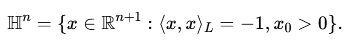 Lorentzian classification is closely connected to hyperbolic geometry, a non-Euclidean geometry with constant negative curvature. One common model of hyperbolic geometry, known as the Lorentz model (or the hyperboloid model), represents points on the forward sheet of a two-sheeted hyperboloid defined within Minkowski space. Concretely, the n-dimensional hyperbolic space HnHn can be represented as: