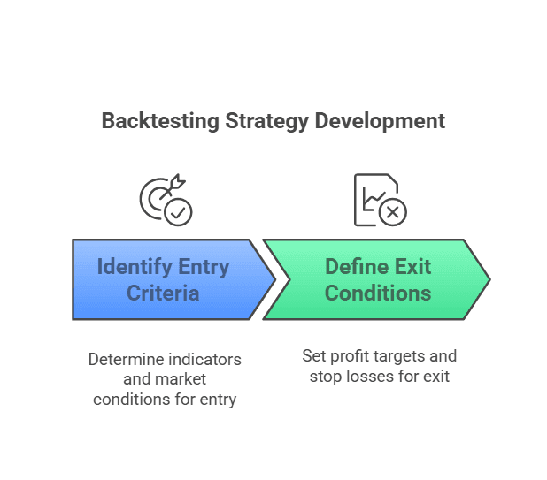 A critical part of backtesting is clarity in your trading rules. In other words, you must decide on entry criteria and exit conditions: